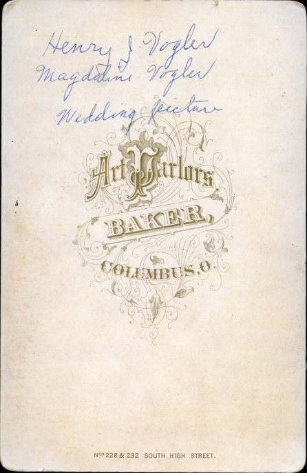 Henry Joseph Vogler and Magdalena Wilhelmine Boblenz Wedding Picture 1881